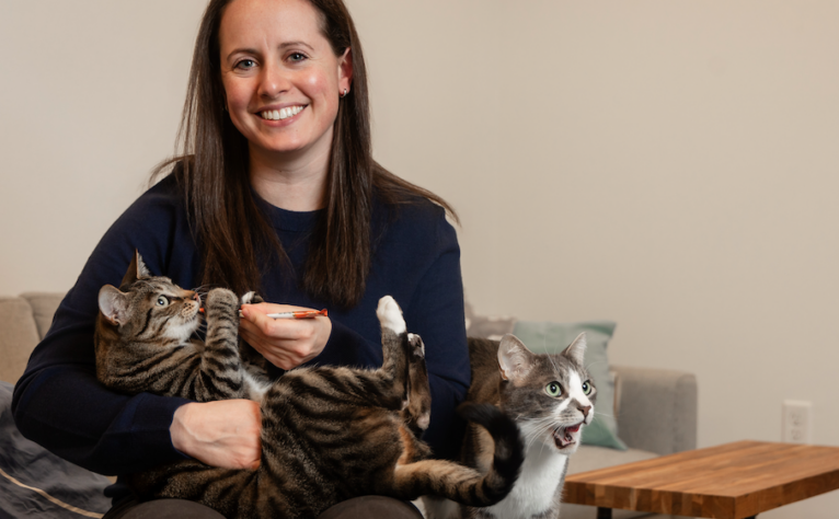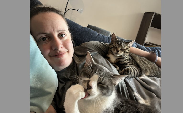 I have two cats: Mac is 6, and Monty is 4. They bring such joy and love into my life. Things they love: couch snuggles, watching birds out the window, eating any food they can get their paws on. They are both sweet and affectionate. Mac is a mama’s boy and loves to cuddle. He is curious and likes to explore the outdoors. Monty is a bit more shy, but becomes very chatty when she’s hungry.