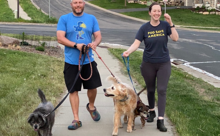 We stay busy! We have a good routine that we are excited to expand upon. We both work most days of the week and then come home to cook dinner together. Katie works close to home and Tommy works from home so we are together in time to do this most nights. Afterward, we walk the dogs and then we might play a game, visit with friends or read. When the season is right, we try to go out to a concert or a sports event and, on the weekends, we make a point to go hiking and visit one of our state parks.